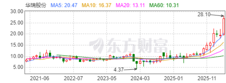 2026年的A股仍在震荡中整理,华瑞股份却走出了一段近乎耀眼的独立行情。截至目前,公司年内股价涨幅已成功翻倍,最新总市值逼近50亿元。
