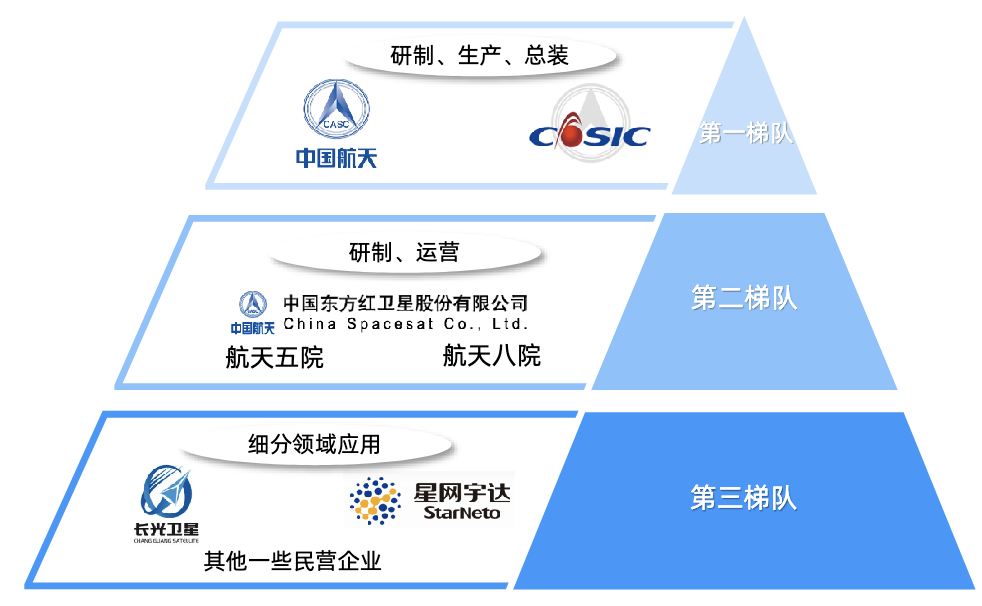第二梯队国有科研院所和国企以以及第三梯队的部分民营企业共同为卫星制造提供了坚实的技术支撑。