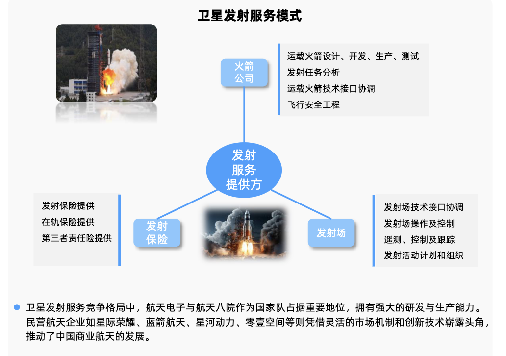 卫星发射的商业模式以发射服务提供方作为核心,提供商业发射运载服务。