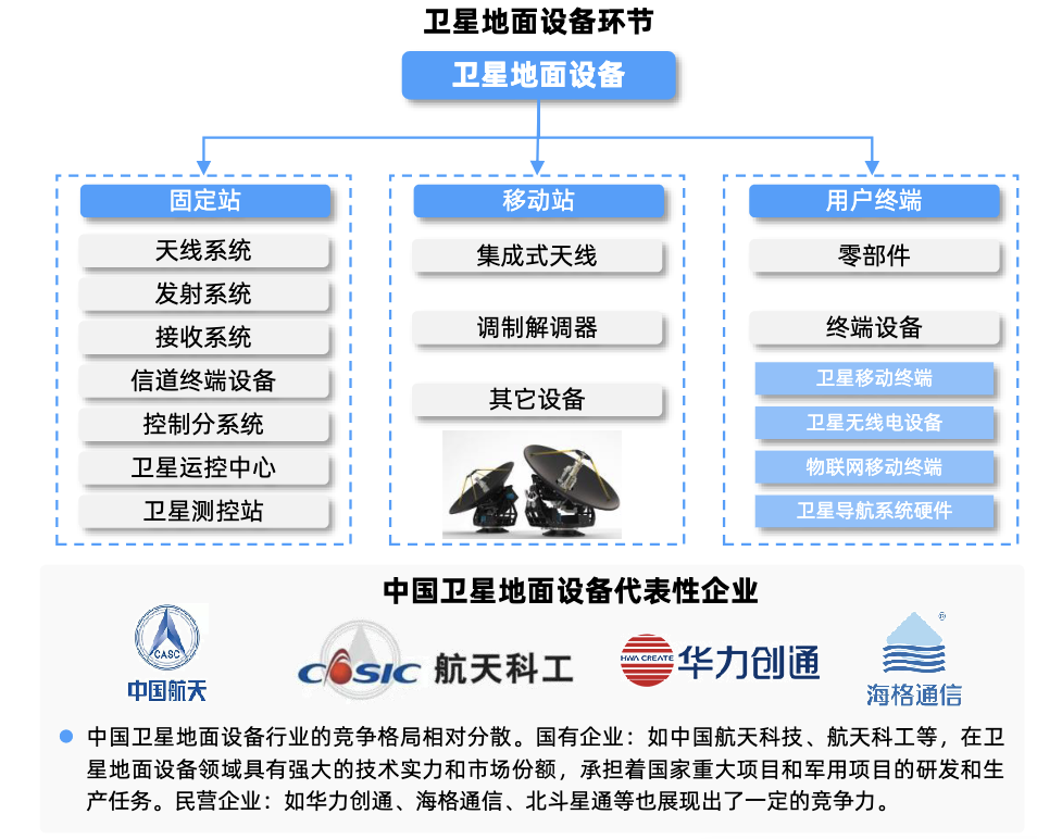 地面设备主要包括固定地面站、移动地面站和用户终端。