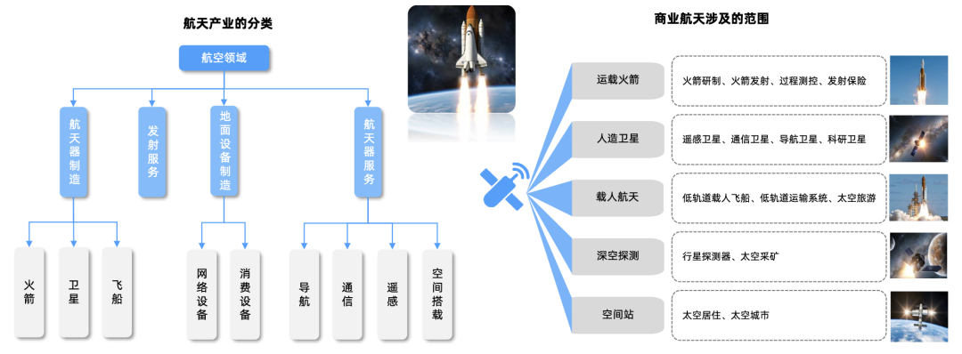 商业航天与军用航天、民用航天并列构成航天工业。