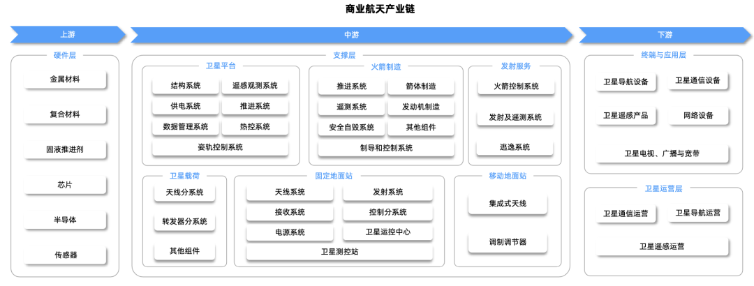 商业航天上游环节主要涵盖原材料的供应与管理,为整个产业链提供基础支持。