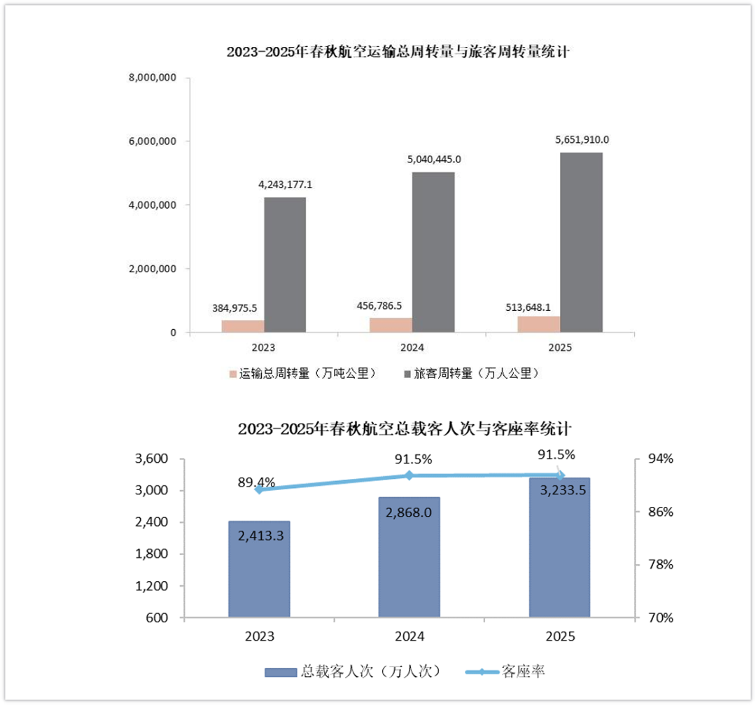 收入结构进一步说明了这一点。从财报来看,春秋航空2025年主营业务收入同比增长8%,其中客运业务收入增长7.9%,货运业务收入增长23.4%。结合运输数据,增长显然不是来自大幅提价,而是在保持客运主盘稳健的同时,尽可能把机队和腹舱资源压榨到更高效率: