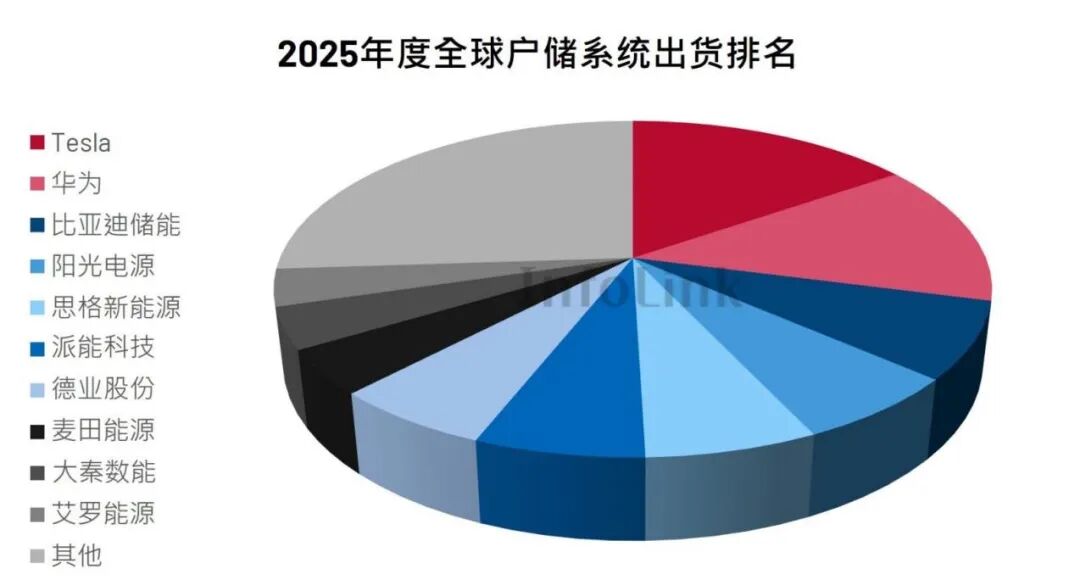 InfoLink数据显示,2025年,思格新能源已跃居全球户储系统出货量第五名,仅次于Tesla、华为、比亚迪储能、阳光电源等一众巨头。