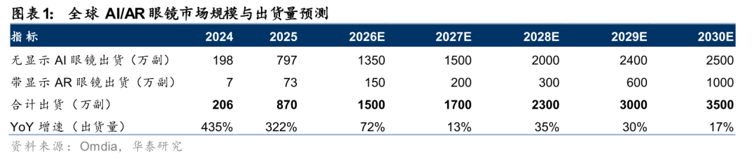 AI眼镜市场规模与出货量预测