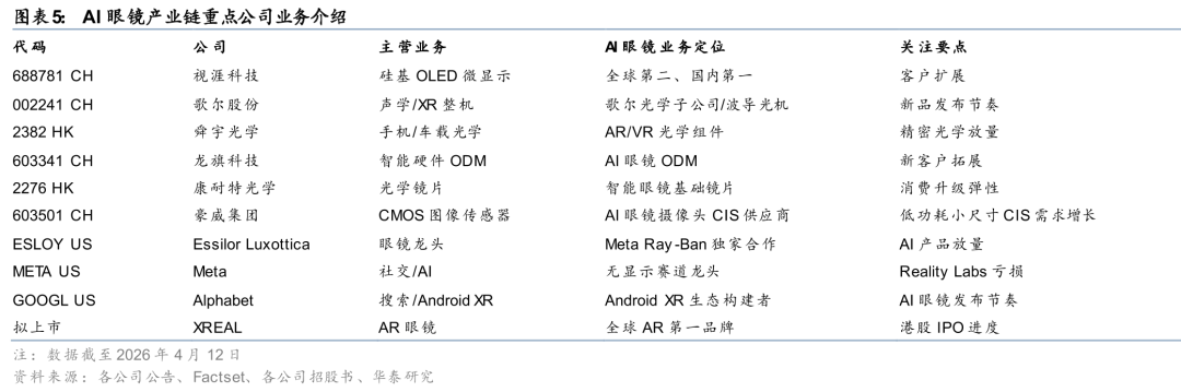 OpenAI的核心产品理念可能是打造“always-on AI companion”与更自然的人机接口。这一方向与Meta的“硬件规模化”、Google的“生态平台化”形成鲜明对比——OpenAI更强调通过硬件打造AI原生的体验。从产业链视角看,如果OpenAI的AI硬件产品获得成功,将为整个AI眼镜及相关可穿戴设备行业带来新的增长机遇。我们将持续跟踪OpenAI的硬件进展。