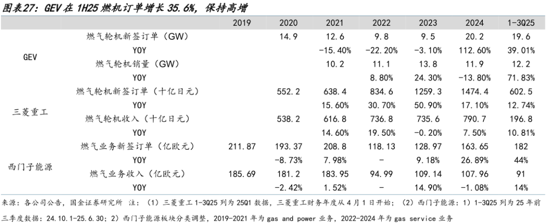 燃气轮机景气度稳健向上。1-3Q25全球燃机龙头GEV新签燃机订单19.6GW,同比增长39%,行业景气度稳健向上。