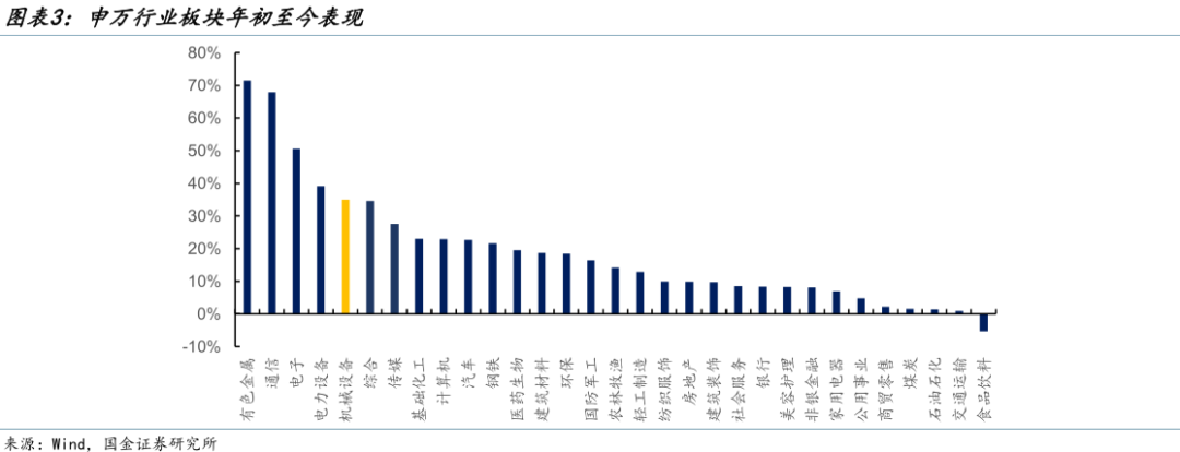 2025年至今表现:SW机械设备指数上涨35.02%,在申万31个一级行业分类中排名第5;同期沪深300指数上涨18.44%。