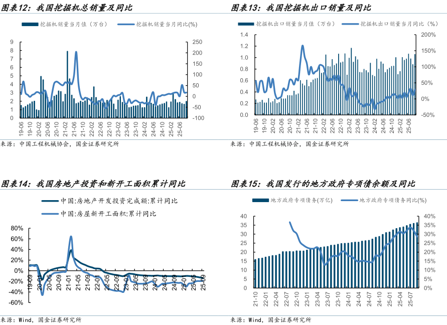 工程机械景气度加速向上。25年9月挖机总销量为19858台,同比 25.4%。其中内销9249台,同比 21.5%,外销9249台,同比 21.5%,内外销持续增长。挖机内外销超预期,海外市场卡特财报业绩展现周期拐点,板块进入新一轮景气向上周期。