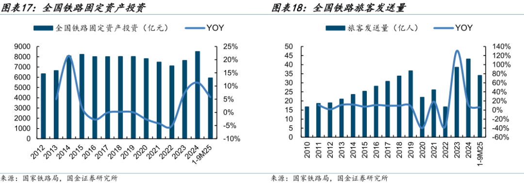 铁路装备景气度稳健向上。2025年以来,铁路固定资产投资保持在6%左右的稳健增长。