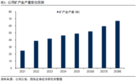 矿产金产量稳中有升:2025年,公司矿产金产量为48.89吨,同比 5.89%,其中25Q1/Q2/Q3/Q4产量分别为11.87/12.84/13.08/11.10吨;矿产金销量为48.39吨,同比 6.95%,其中25Q1/Q2/Q3/Q4销量分别为10.99/12.61/13.22/11.57吨;矿产金库存为4.89吨,同比 11.53%。2025年,公司选矿(入堆)处理量增加42.74%,综合选冶回收率提升0.32个百分点,运营效率与盈利能力同步提升。公司2026年的生产经营计划是:黄金产量不低于49吨。