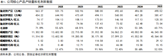 碳酸锂:2025年碳酸锂产量为4.65万吨,销量为4.56万吨。公司依托察尔汗盐湖丰富的锂资源储备,持续加码盐湖提锂项目,4万吨锂盐项目于2025年9月底建成并投料试车,另外公司于今年年初完成五矿盐湖的收购,五矿盐湖已建成碳酸锂产能1.5万吨/年。公司多个盐湖提锂项目有望发挥协同效应,技术互补,单位成本有进一步优化的空间。