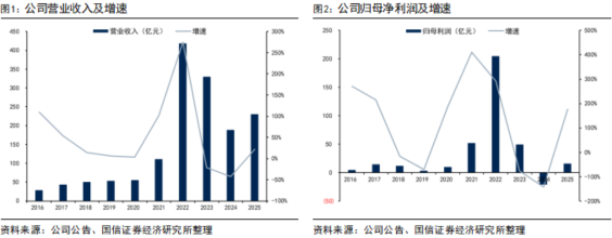 公司发布2025年年报:实现营收230.82亿元,同比 22.08%;实现归母净利润16.13亿元,同比 177.77%;实现扣非净利润-3.85亿元,同比 56.56%。公司25Q4实现营收84.57亿元,同比 69.78%;实现归母净利润15.87亿元,同比 210.73%;实现扣非净利润5.57亿元,同比 205.06%。