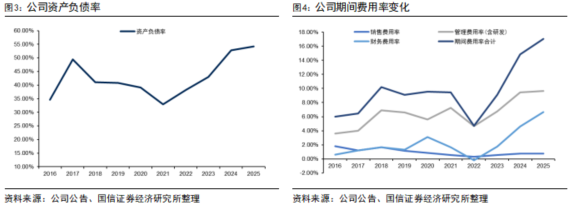 财务数据方面:①截止至2025年末,公司资产负债率为54.23%,相比于2024年末上升1.43个百分点;在手货币资金约84.22亿元,同比 41.68%;在手存货约130.02亿元,同比 50.95%;公司现金流充裕。②期间费用方面,2025年销售费用约1.72亿元,同比 16.83%;管理费用约11.85亿元,同比 36.04%;研发费用约10.42元,同比 14.43%;财务费用约15.34亿元,同比 75.62%,主要系利息费用增加和汇兑损失叠加影响。③利润分配方面,公司拟向全体股东每10股派发现金红利1.5元(含税),总计派发现金分红总额约3.15亿元。