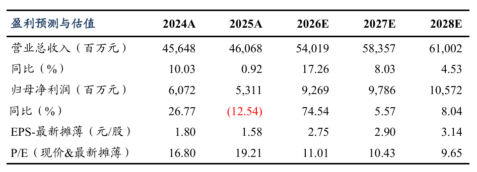 事件:2026年4月13日,公司发布2026年一季报,实现营业收入126.8亿元(同比 2.8%);实现归母净利润21.2亿元(同比 35%);实现扣非后归母净利润19.5亿元(同比 15.5%)。整体来看,公司经营情况优异,业绩符合我们预期。