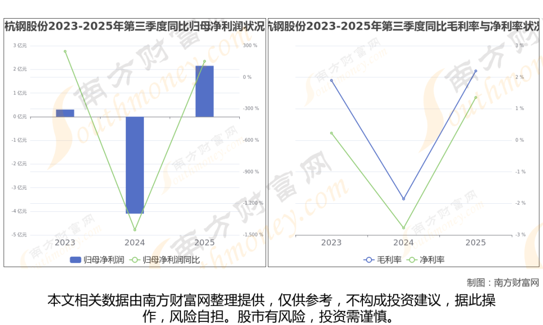 杭钢股份2025年第三季度季报显示,公司实现净利润2.15亿,同比增长152.36%;毛利润为3.48亿,毛利率2.2%。