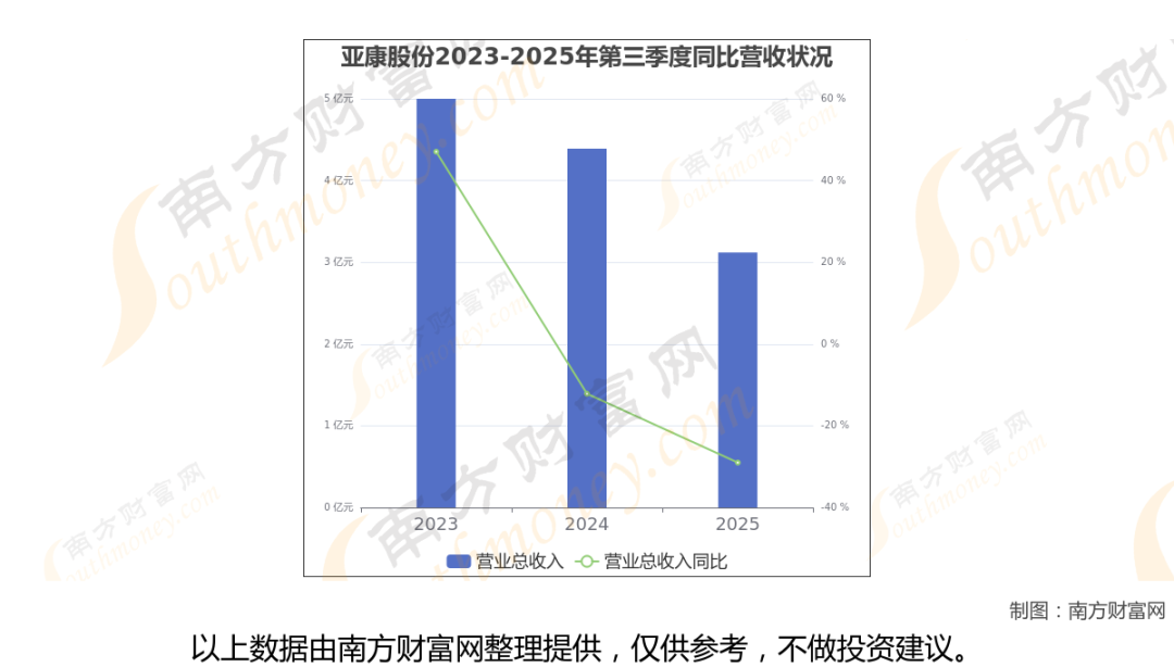 在2025年第三季度,亚康股份的业绩表现(如上图),主营业务收入达到3.12亿元,实现了-28.99%的同比增长率。