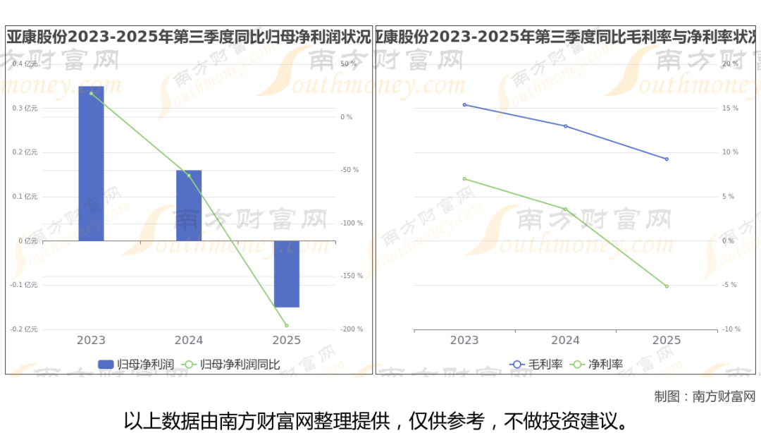 2025年第三季度季报显示,亚康股份公司实现净利润-1525.09万,同比上年增长率为-196.39%,毛利率9.26%。