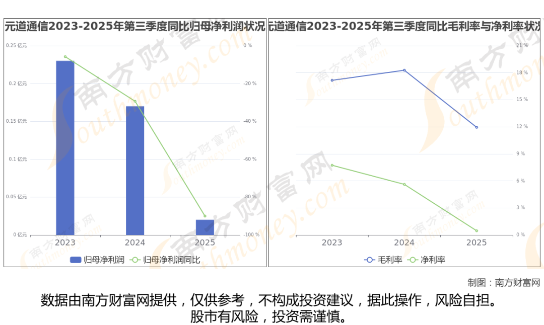 元道通信2025年第三季度季报显示,公司实现净利润164.92万,同比增长-90.04%;毛利润为4289.07万,毛利率11.94%。