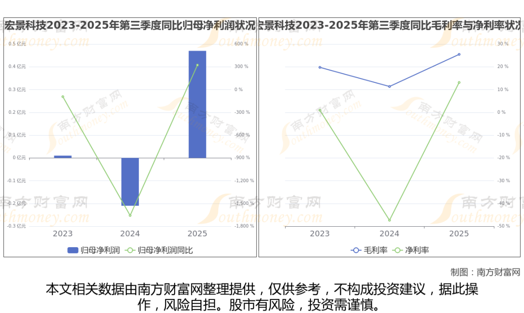 2025年第三季度季报显示,宏景科技公司实现净利润4723.77万,同比增长323.01%;毛利润为9245.18万,毛利率25.46%。