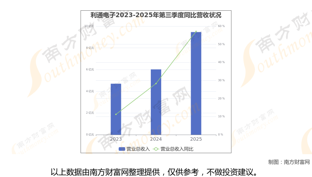 (如上图)利通电子披露2025年第三季度报告,报告期实现营收9.46亿元,同比57.09%。