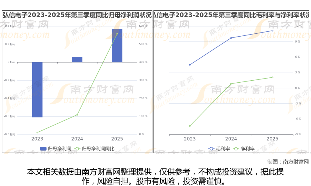 弘信电子2025年第三季度季报显示,公司实现净利润3652.17万,同比增长558.3%;毛利润为2.29亿,毛利率11.13%。