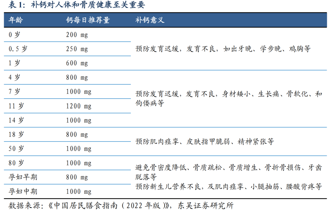 2.2.1. 补钙对人体和骨质健康意义重大、需求刚性