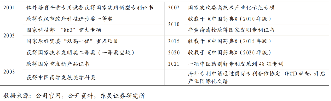 3.3. 大鹏体培牛黄享独家首创技术及系列专利,壁垒坚固业绩稳定