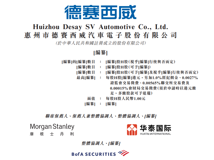 4月12日,德赛西威正式向港交所递交上市申请,摩根士丹利与华泰国际任联席保荐人,启动“A H”双重上市进程。