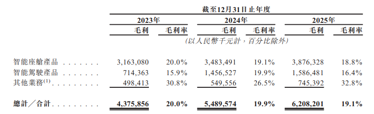 2023年至2025年,德赛西威的整体毛利率分别为20.0%、19.9%、19.1%,三年累计下降0.9个百分点。智能驾驶产品毛利率波动尤为明显——2024年一度冲高至19.9%,2025年回落至16.4%。