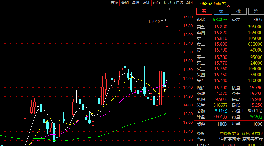 港股海底捞盘中涨超9%。1月13日,海底捞发布公告称,苟轶群辞去CEO,创始人张勇接任。