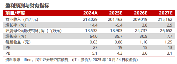 2025 年 10 月 25 日,公司发布 2025 年三季报。2025 年前三季度,公司实现营业收入1454.85 亿元,同比减少5.99%,实现归母净利润142.80 亿元,同比增长72.61%,实现扣非归母净利润145.37 亿元,同比增长 69.98%。
