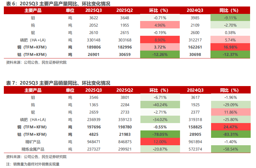 3. 2025Q3单季度铜产量环比持续增长,钴仍有部分库存销售