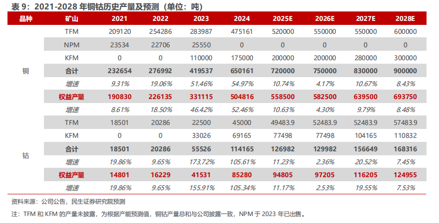 ◾ KFM二期建设议案通过董事会审议:KFM二期拟投资10.84亿美元,建设期2年,拟于2027年建成投产,新增原矿处理规模726万吨/年,达产后预计新增年平均10万吨铜金属。