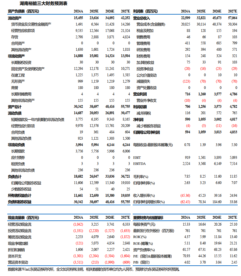 Q3出货满产满销、高端产品占比持续提升、龙头地位稳固。公司25Q1-3铁锂出货78.5万吨,同增65%,我们预计Q3出货30.4万吨,同环比增 82%/18%,超行业增速,份额进一步提升,我们预计Q4出货量30万吨 ,全年出货预计近110万吨,同增50% 。我们预计公司当前月均排产10万吨,已超产,订单供不应求满产满销,预计26年出货140-150万吨,同增30% ,储能需求超预期公司充分受益。我们预计公司高端产品出货占比达50% ,YN-13产品逐步起量,26年高端产品出货占比预计提升至60%,远期有望提升至80%,龙头地位稳固。