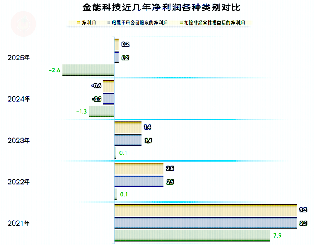 2024年是金能科技有公开数据以来的首次亏损,2025年已经成功扭亏。只是赚得仍然非常少,实际上这两年处于同一水平区间。我们在后面会看到,其扣非净利润方面的表现,实际上还不如2024年。