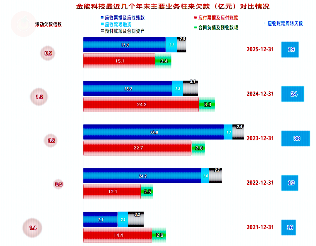 应收和应付项目在2023年达到峰值后,两者均在下降,虽然欠款倍数在大幅波动,但实际上回收资金和用于支付供应商欠款,还是能维持基本平衡的。2025年末的应收账款周转天数大幅下降,实际上是经营上正在适应新环境的表现,这方面确实是变得更好了。