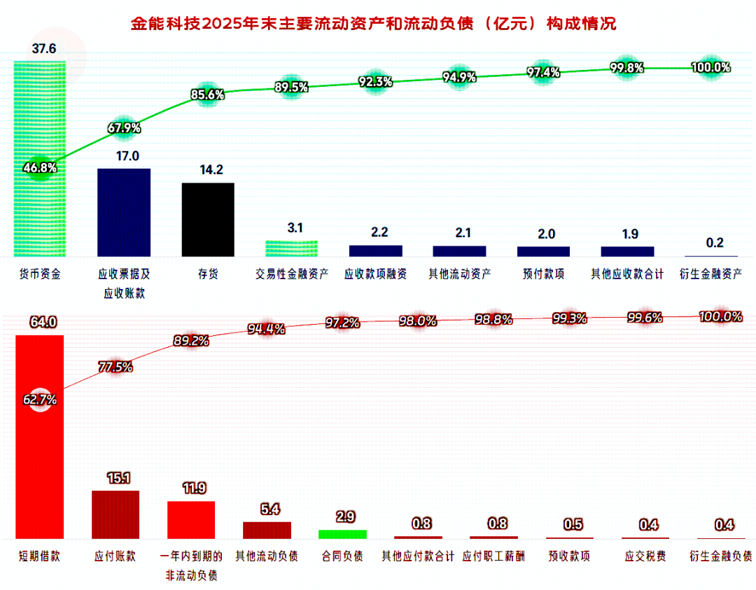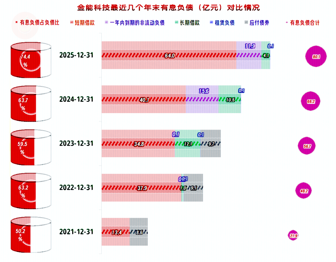 金能科技2025年末的有息负债规模继续增长,已经超过了80亿元,占到负债总额的3/4左右,差不多到了极限。如果后续项目建设的规模较小,也不太可能将短期有息负债置换为长期有息负债,就这样维持着,根据市场的形势采取调整措施,还是可行的。