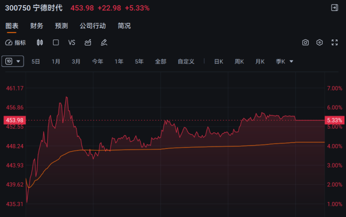 不过4月16日的大涨,更让其市值有说服力。当天,宁德时代股价大涨5.33%,来到了453.98元。
