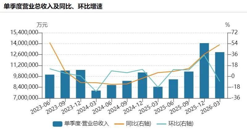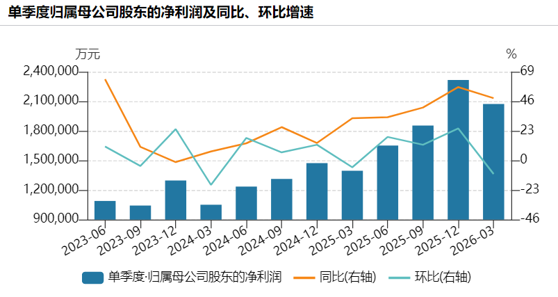 4月15日晚间,宁德时代公布了2026年一季报,再次刷新了上限——