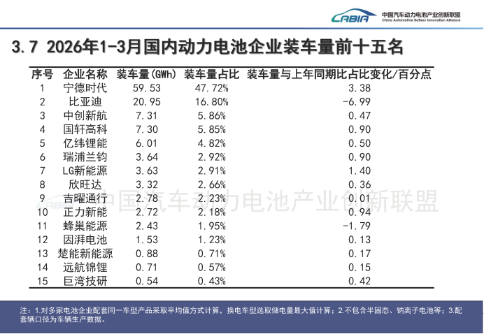 但是,一季度,宁德时代国内动力电池装车量59.53GWh,比2025年的57.53GWh还略有增长(笔者注:国内装车量和前面的销量并不一致,一方面还有的未装车或者作为备件,另一方面销量还包括出口)。