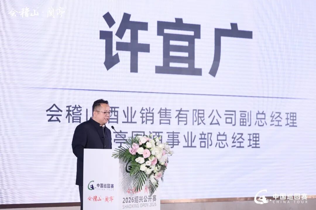 中国高尔夫球协会男子职业赛事部部长 李今亮2026年是“十五五”规划的开局之年。中国高尔夫球协会男子职业赛事部部长李今亮在致辞中指出:“中国高尔夫球协会正积极践行体育强国与文化自信的国家战略。会稽山·蘭亭·2026 绍兴公开赛作为中巡赛在长三角核心区域的重要拓展,不仅是一场高水平的国际竞技,更是“跟着赛事去旅行”理念的生动实践,将为长三角体育事业的高质量发展注入新动能。”浙江省高尔夫球协会主席俞春雷强调,浙江正全力建设“赛事之省”。“将中巡赛这样的顶级职业赛事引入古城绍兴,是‘体育赋能浙江’宏伟蓝图中的关键一环,不仅提升了本土竞技水平,更向世界展示了一幅流动的、现代的江南繁华图景。”本次赛事由会稽山·蘭亭独家冠名。会稽山酒业销售有限公司副总经理、兰亭国酒事业部总经理许宜广从文化传承的角度深度解读了此次跨界合作:“东晋永和九年,群贤雅集于兰亭;1700年后,我们以“蘭亭”之名携手中巡赛,正是要让历史文脉与高尔夫运动的自律、进取精神跨时空对话。我们坚守280余年的匠心传承,正如职业球员对每一杆的极致追求。”发布会前夕,陈子豪、沈楠楠等职业球员走进会稽山绍兴黄酒博物馆,沉浸式感受了中国黄酒的匠心魅力。组委会表示,这不仅是一场赛事,更是一件用心雕琢的“体育文化作品”,力求打造一场“可看、可品、可回味”的体育盛宴。”