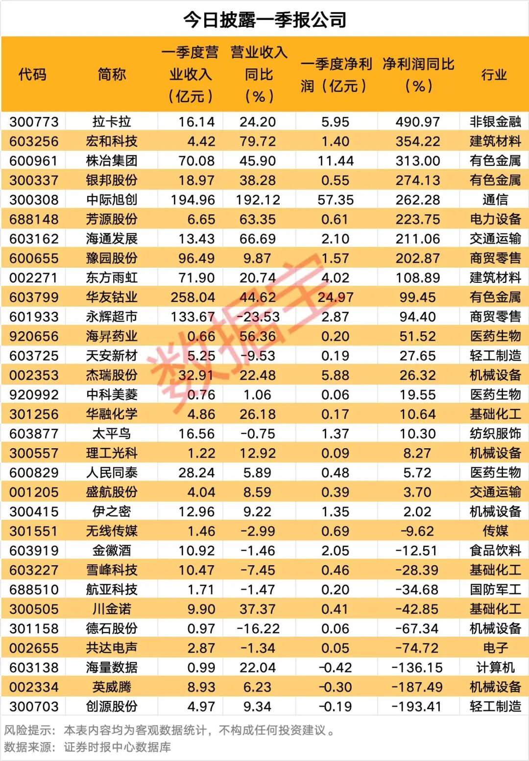 从市场表现看,亮丽一季报发布后,多股股价走强,株冶集团今日一字涨停,拉卡拉早盘高开后最高涨超8%,宏和科技低开高走,早盘最高涨超6%。