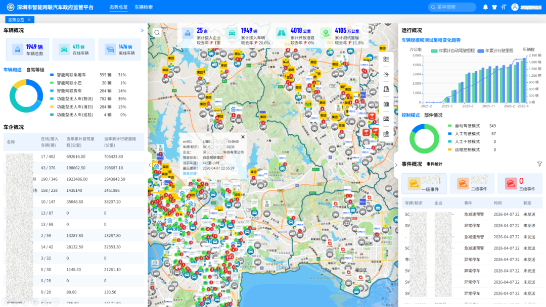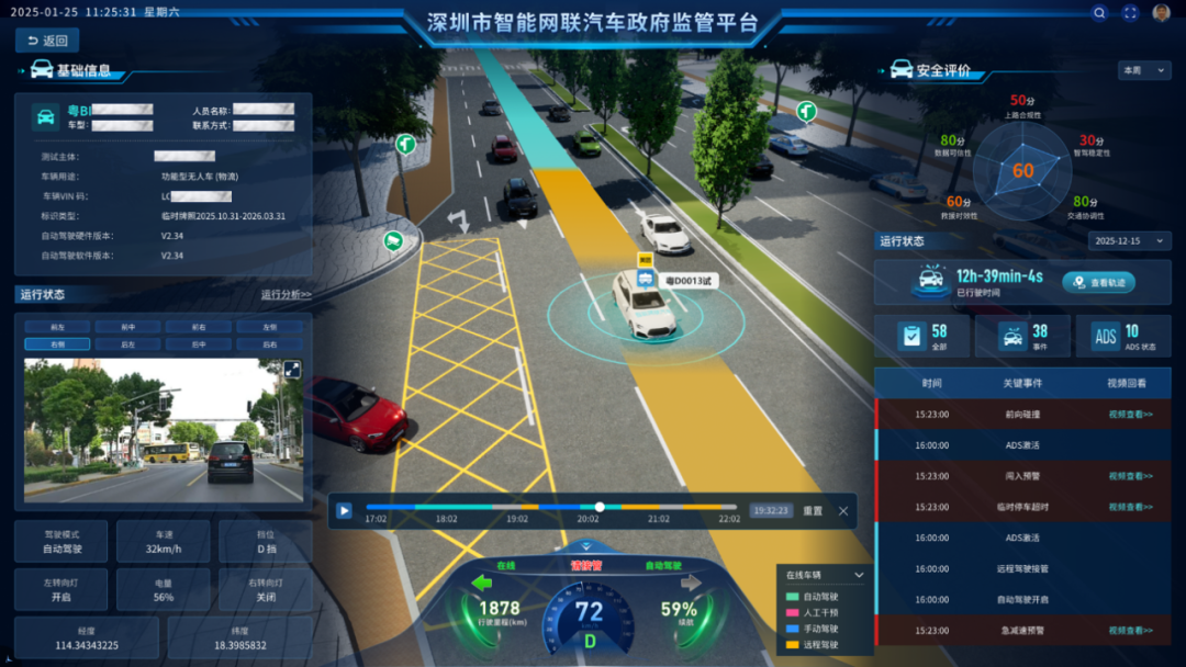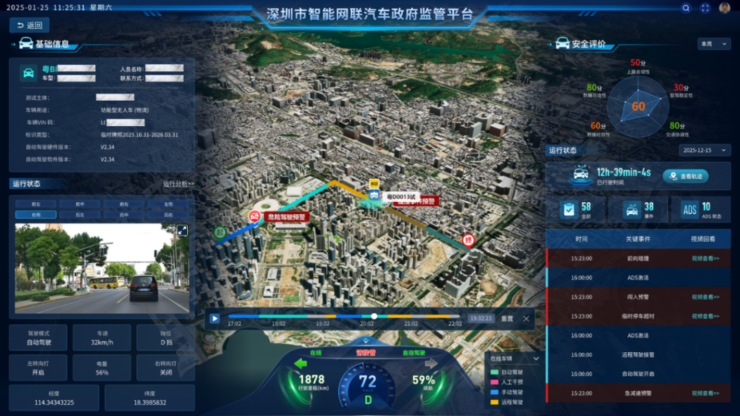 “智能网联安全监管智能体”已在深圳市智能网联汽车监管平台等项目中深度应用,累计接入测试与运营车辆近2000台,率先构建智能网联汽车安全评测-风险预警-应急响应体,系统海外版已经在阿布扎比等城市落地应用,成为深圳经验对外输出的典型案例。
