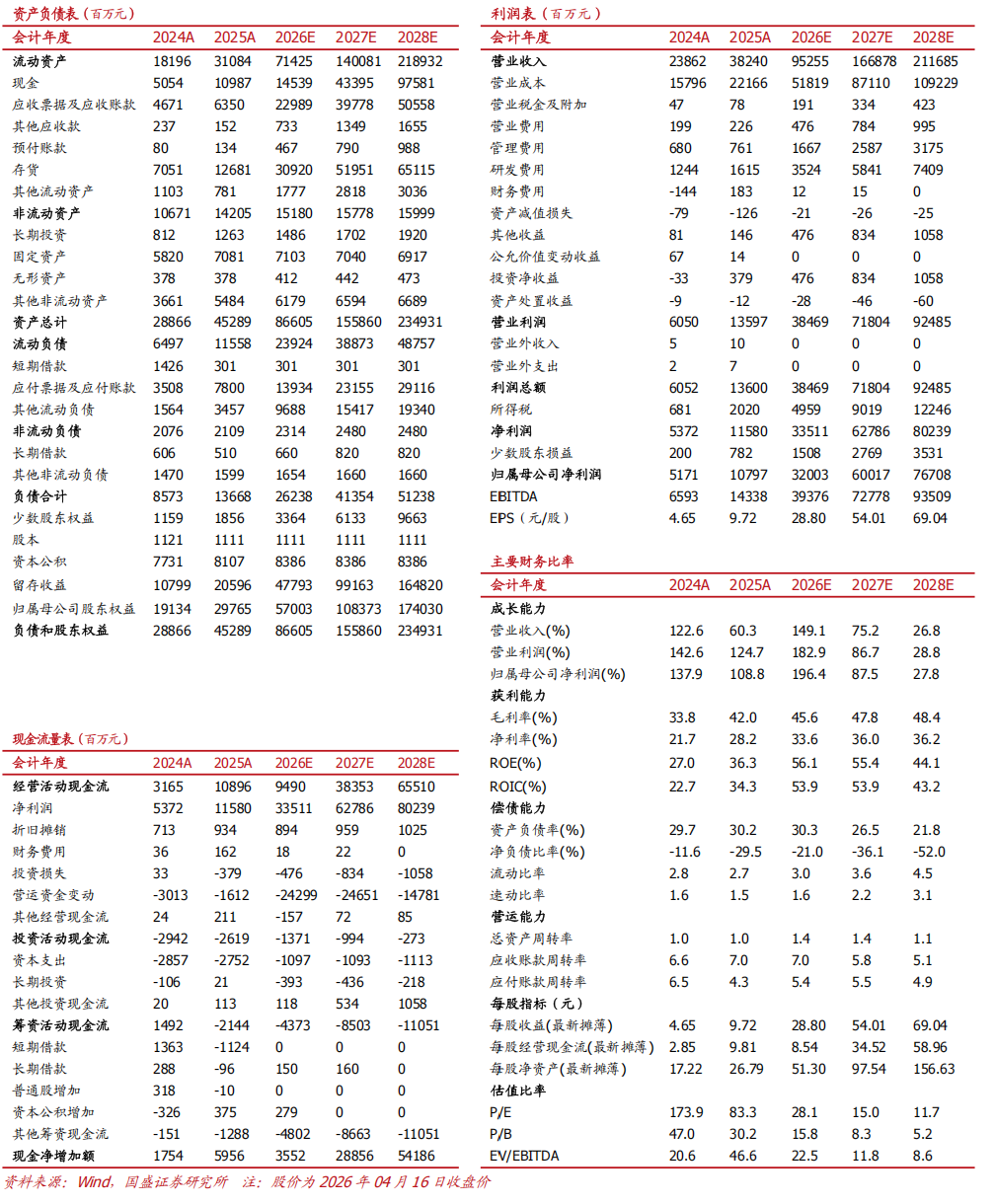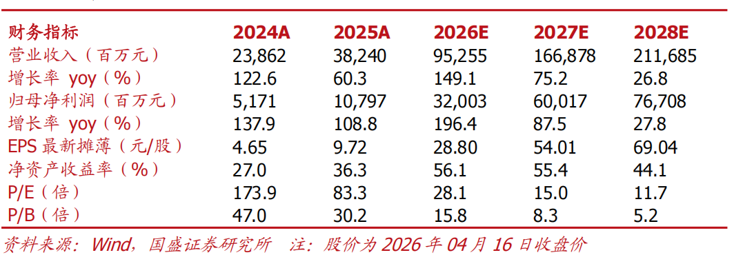 具体事件:公司发布2026年一季报,第一季度实现营业收入194.96亿元,同比增长192.12%;归母净利润57.35亿元,同比增长262.28%,环比2025年Q4(36.65亿元)大幅增长约56.45%;单季度毛利率大幅跃升至46.06%,各项核心盈利指标均创下单季度历史新高。