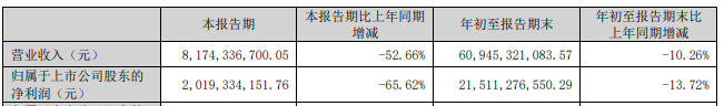 前三季度的整体数据同样难看,营收同比下降10.26%至609.45亿元,净利润同比下降13.72%至215.11亿元。