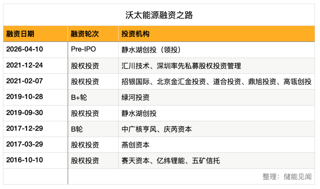 此外,静水湖创投是其长期投资方,从早期到Pre-IPO轮持续加注,静水湖创投创始管理合伙人张毅在2016年就A 轮重仓领投了沃太能源,此后静水湖创投旗下基金分别在2019年、2020年、2026年间持续加注沃太。