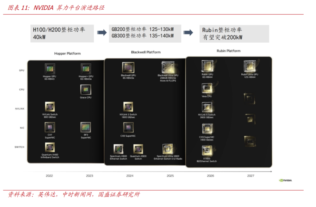 综合英伟达产品代际演进、NVL72标准化架构、AIDC功率需求,我们认为: