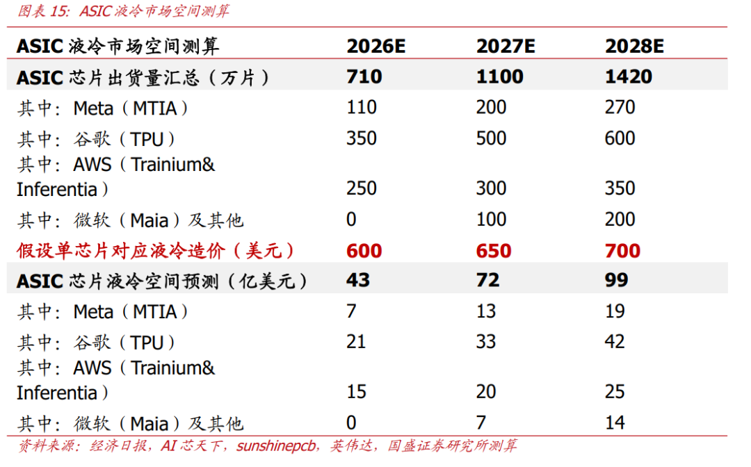 考虑到不同CSP推进节奏差异,我们认为2026年ASIC液冷市场空间在30–50亿美元区间更为合理。