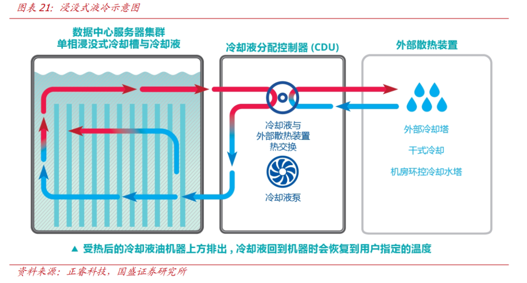 单相浸没:冷却液始终保持液态,主要通过泵驱动循环。